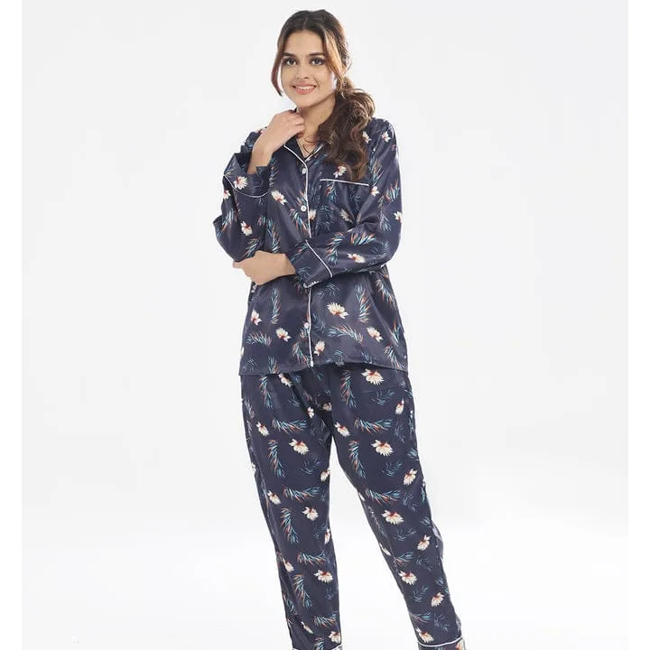 Indulge in luxury and comfort with this premium silk pajama suit. Designed to bring elegance to your loungewear, the Bloom Haven Collection includes: