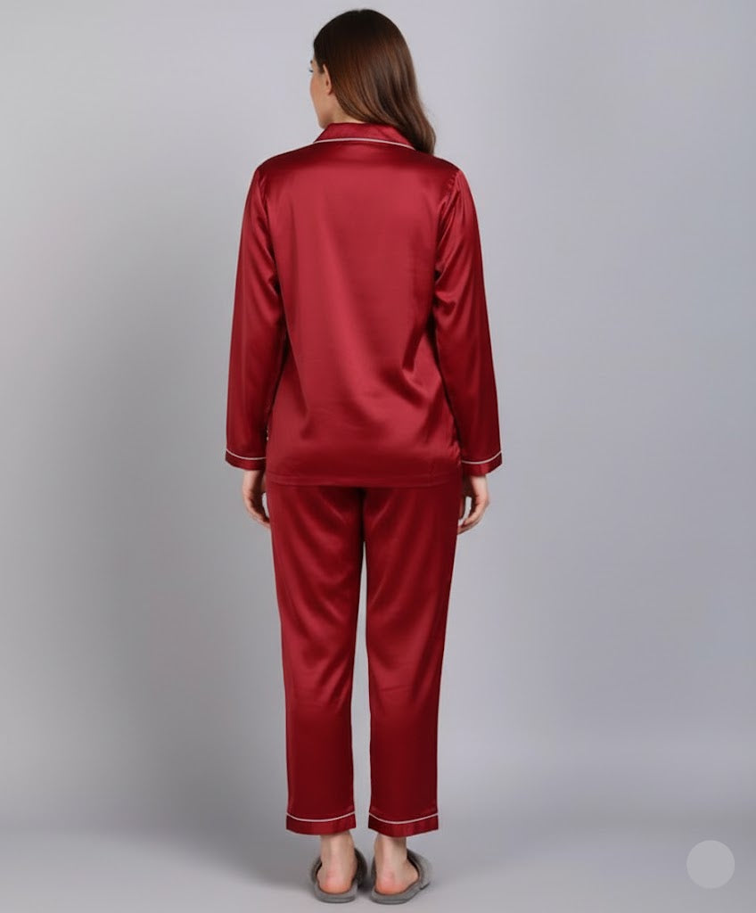 The elegant pearl-like shine of the fabric adds a sophisticated touch, making this silk night suit as fashionable as it is functional. Whether you're treating yourself or looking for a thoughtful gift, the included matching scrunchie brings an extra layer of charm and practicality.